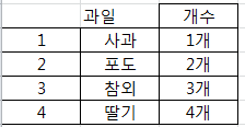 - 과일 앞에 적힌 숫자부터 드래그하면 정상적인 데이터를 불러오지 못함